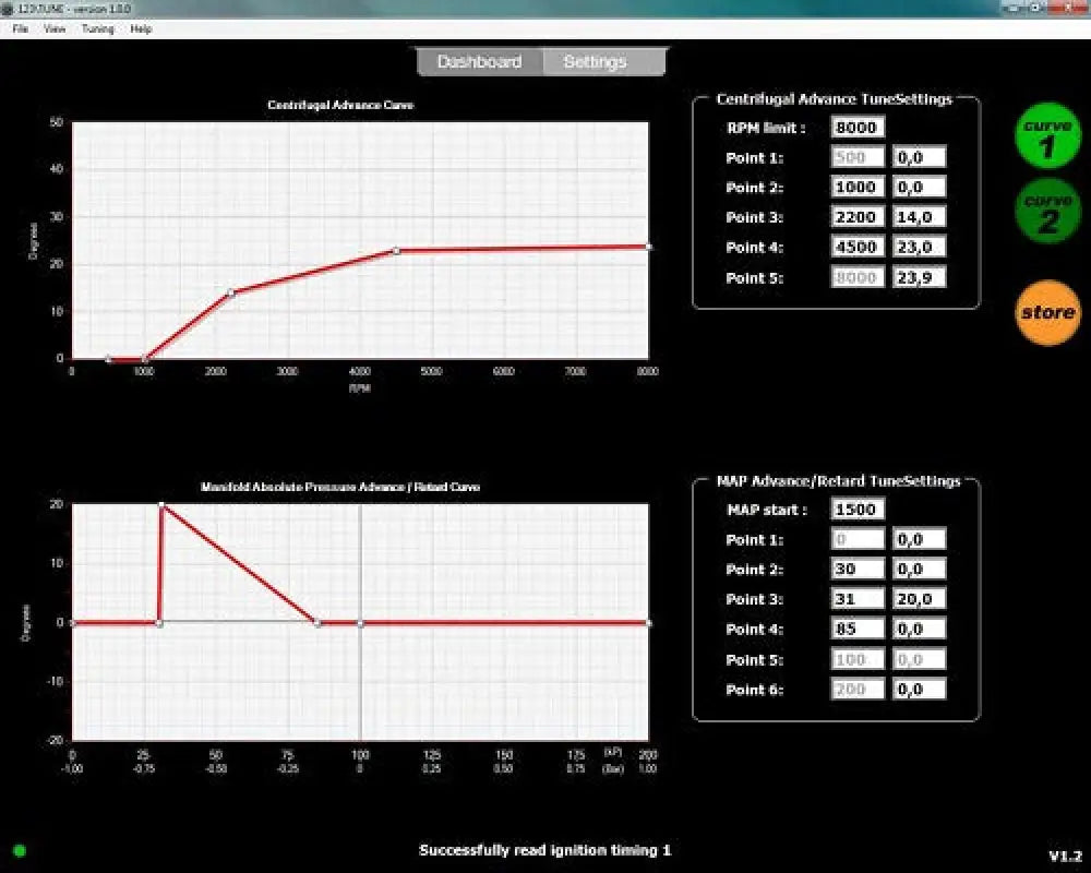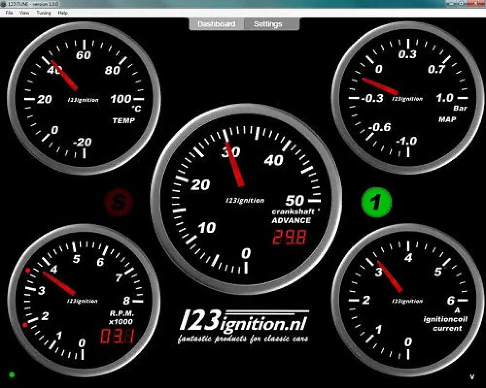 If you want to tune your engine, or you have an engine for which there is no standard distributor available….. And you are a Windows PC user, the 123\TUNE is the answer! By connecting it to a computer, you can easily adapt the 123\TUNE to fulfill even the most demanding requirements. The unit offers two sets of curves that can be selected by placing 12 Volt on a wire from the 123\TUNE. Handy, if you’re driving on two different fuels, like regular fuel with LPG or with Ethanol